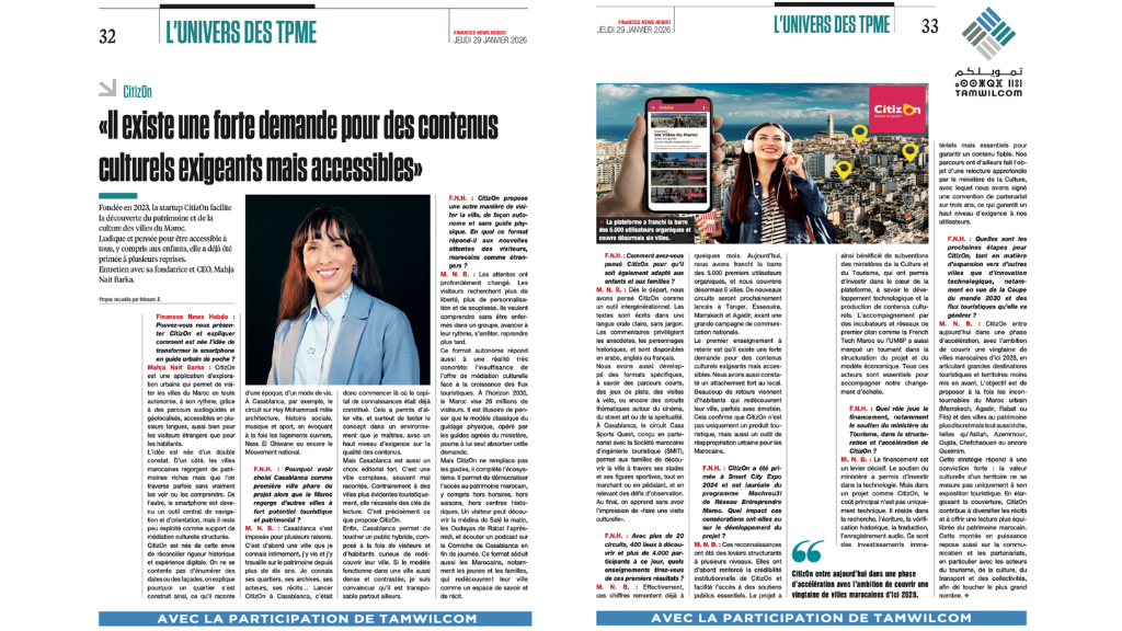 Bienvenue dans l’espace presse de CitizOn, l’audio-guide nouvelle génération pour explorer Casablanca et d’autres villes marocaines en toute autonomie. Retrouvez ici nos communiqués, visuels et actualités pour tout savoir sur notre projet et nos initiatives culturelles.
